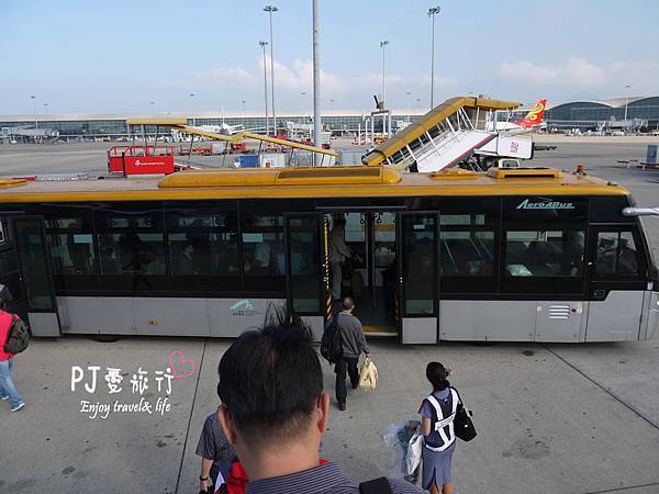 須搭接駁車前往航廈,若跟PJ一樣情況